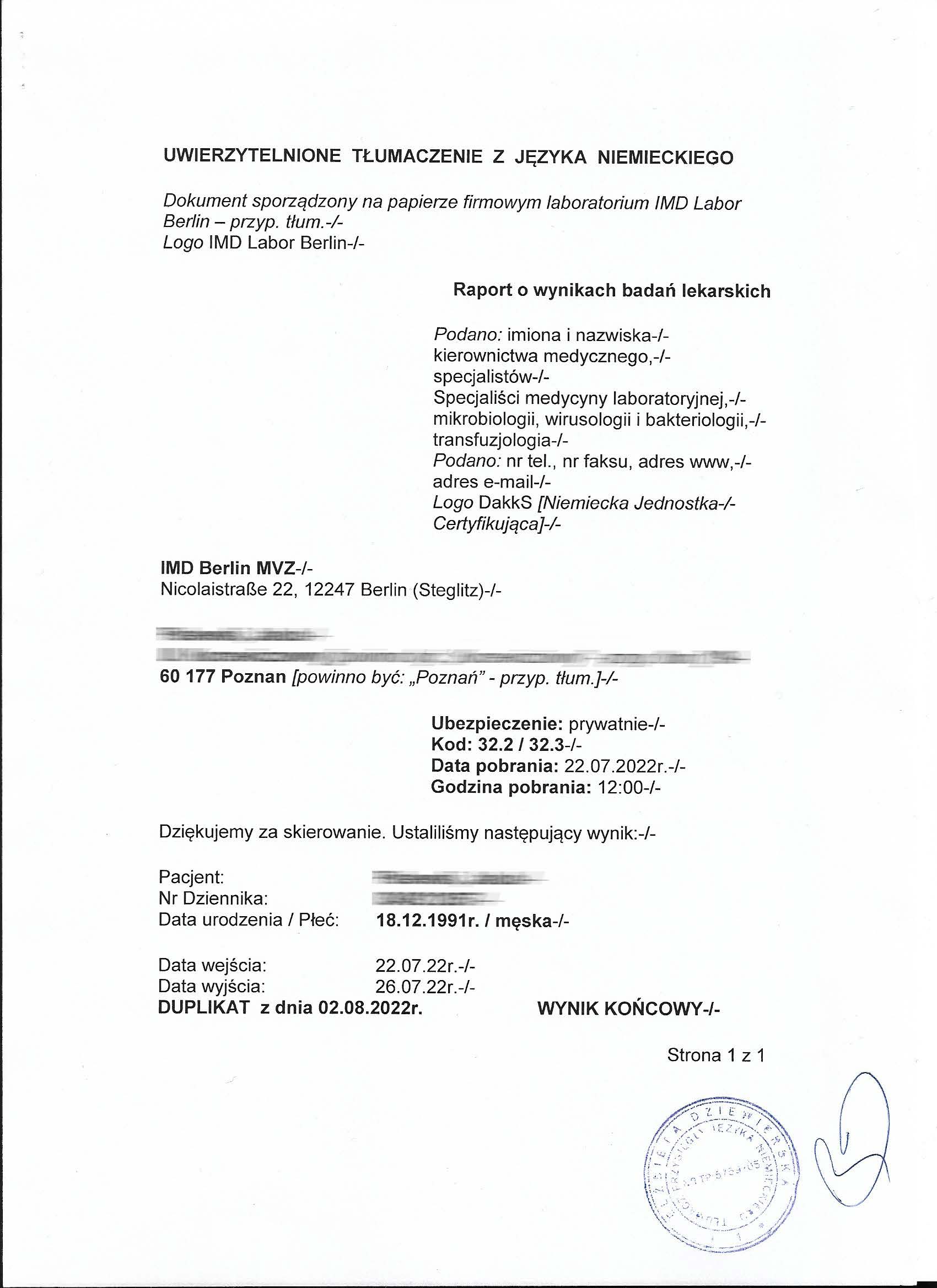 W organizmie mężczyzny, w badaniu z dnia 22.04.2024 widoczny poziom ATP w granulocytach wynosił 0,254nmol , po 2 miesiącach terapii preparatem, poziom ATP wzrósł do 0.522nmol czyli o 105,5%.